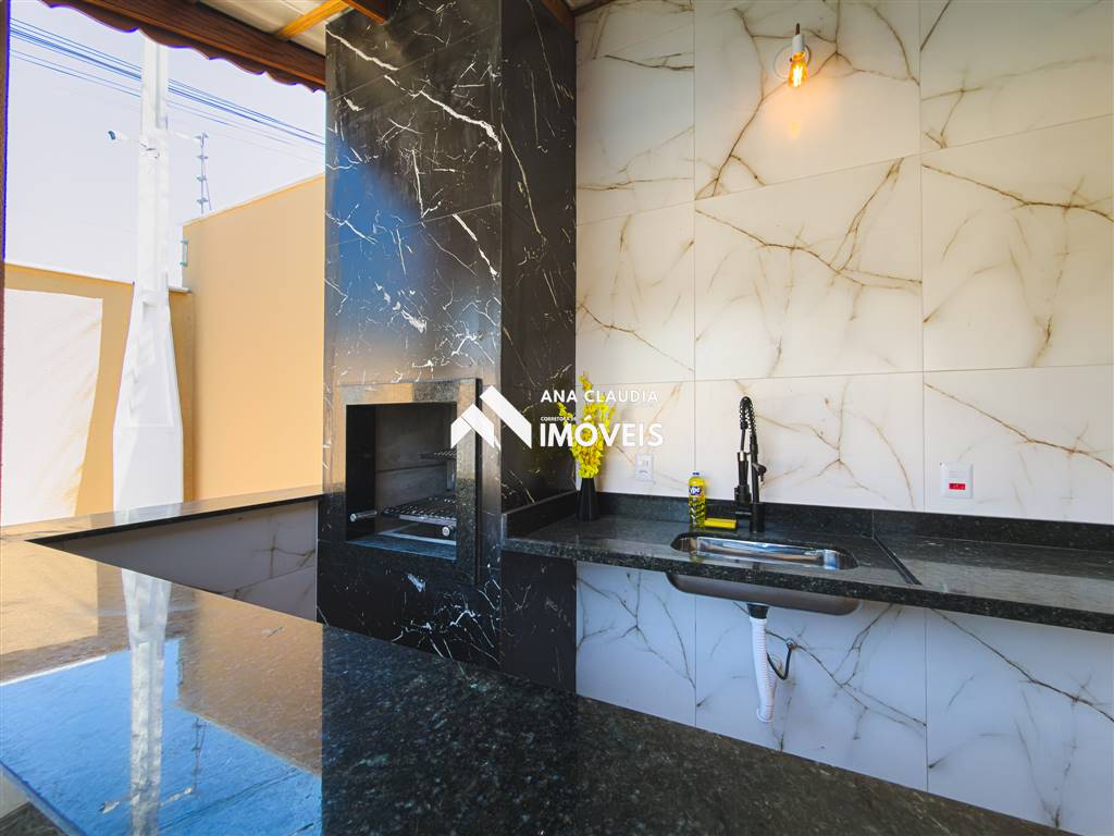 * Área de lazer completa com **churrasqueira** e **piscina com cascata**