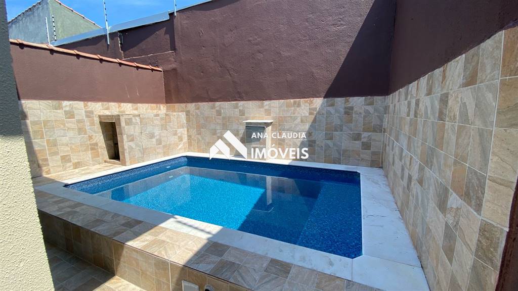 2 Dormitórios sendo 1 suíte, sala e cozinha integredas, banheiro social, piscina com cascata, churrasqueira, 2 vagas de garagem.